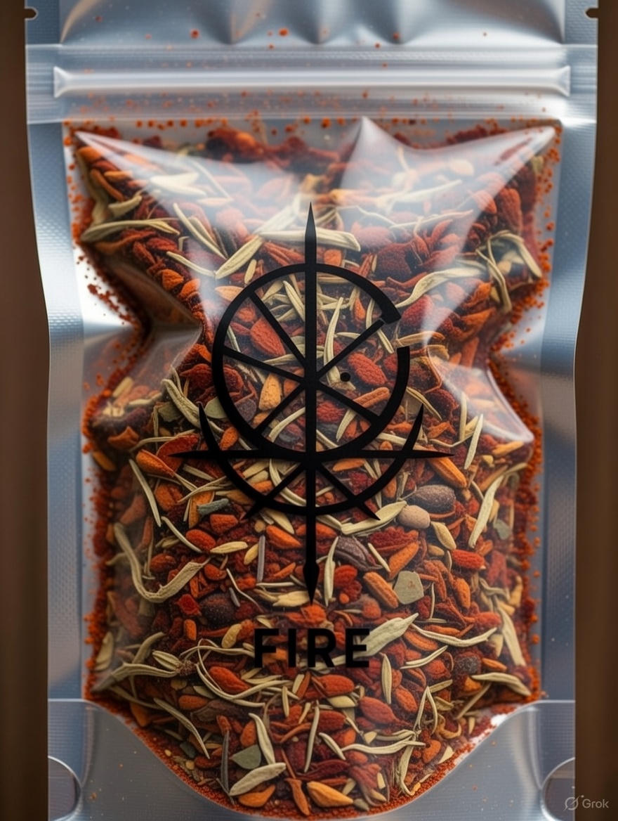 FIRE – Boudica-B Elemental Blend Erupt into blazing sovereignty, unconquerable flame. This ferocious blend roars with the untamed heart of volcanic creation, incinerating fear, forging destiny, and igniting the wildest expression of your sacred rage and passion. Cinnamon cracks open dormant kundalini fire, ginger surges molten courage through every vein, clove burns away weakness with merciless precision, chili unleashes fearless, transformative heat, and rosemary feeds the eternal flame of unbreakable purpose. Burn it high in ritual fire, steep it as a war-draught, or carry its embers close—feel the magnetic inferno seize your core, consuming limits, transmuting pain into power, and radiating a presence that bends reality itself. Step forward radiant, terrifying, magnificent. You are the wildfire that remakes the world. Burn brighter than stars.